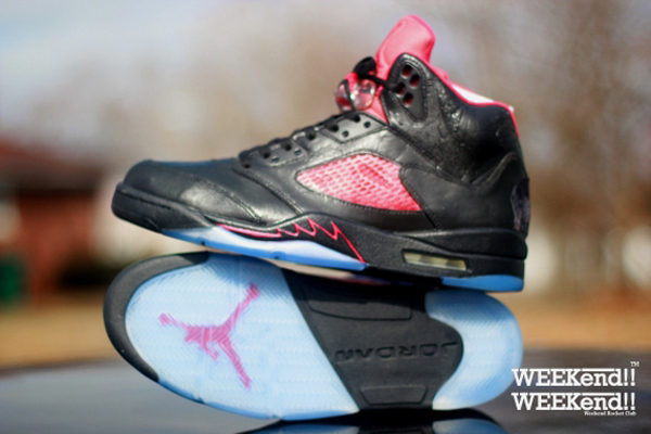 此次又给大家带来了最新的 Air Jordan 5 最新的定制鞋款,此鞋款的定制设计是 Rocket Boy Nift 受小熊维尼的启发并命名以小熊维尼的故乡 “温尼伯” 来命名。此鞋款鞋后跟以一个黑色熊叼着鱼的刺绣,主色调以黑红为主,大家觉得如何呢?各位自己也来动手做一款吧。