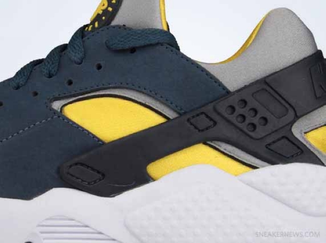 近日这双中队蓝配色的 Nike Air Huarache LE 曝光于网络,以中队蓝配色为主的鞋面搭配灰色鞋跟以及硫化黄色内衬,喜欢的朋友可以关注一下,目前已经曝光了货号信息。 Nike Air Huarache LE 货哈:318429-002