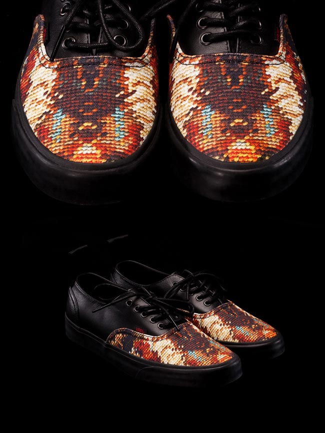 而本次 Vans California 系列与 KIROIC 的合作在忠于 Vans 经典设计的前提下,设计师利用数码印花工艺将绒绣鞋面图案完整且逼真的复制于 Vans 标志性鞋款Era之上,整个鞋身和鞋底设计也根据 KIROIC 的作品改进为全黑色,后跟鞋拔细节则采用汽车安全带材质。可以说整款鞋巧妙地将 Vans 与 KIROIC 的经典设计融为一体。