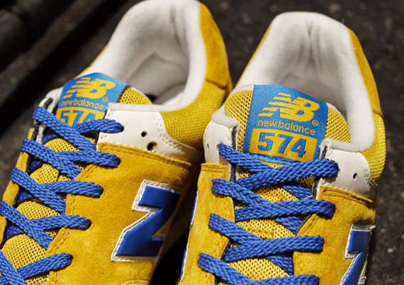 近日一款全新配色的 New Balance 574 曝光于网络,这款配色采用了黄色的麂皮材质搭配网眼面料组成鞋身主体,而 N 标志、鞋带以及细节位置则以蓝色打造,整款鞋的配色十分亮眼。据悉这款 New Balance 574 将在2013年下半年发售,具体时间未定。