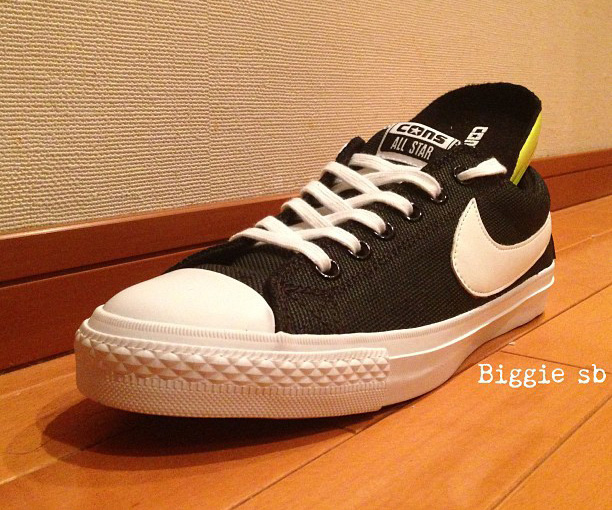 你们是否想象过又朝一日 Nike 会联手 CONVERSE ?如今,这一设想成为了现实,今天网络上曝光了一款集合了 CONVERSE All Star 以及 Nike Blazer 特点的全新鞋款,并且搭载了 Nike 的 Lunarlon 缓震技术。目前还没有这款鞋的详细信息,有兴趣的朋友可以持续关注我们的后续报道。