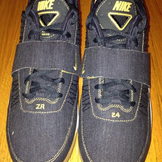 Nike 旗下大热训练鞋款 Nike Zoom Revis 此次又曝光全新版本!这款特殊版本汲取了在 Lebron 10 EXT 上大热的单宁面料,采用了藏青色的单宁材质覆盖鞋身,并配以黄色缝线勾勒,散发出了浓浓的美国西部风情。