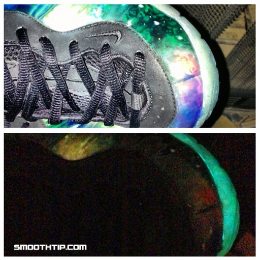 星空元素在去年的火热带动了不少相关单品的疾走,时至2013年,Nike Air Foamposite Pro也诞生了不少与星空元素有关的鞋款。这双名为“Green Galaxy(绿色星系)”的客制版球鞋的设计灵感便来源于星空。本鞋由Roberto亲自督造。在这双客制鞋的设计中,绿色的星河蔓延在整双鞋子的外壳上。透明的大底元素采用了荧光元素进行渲染,当关上灯时,绿色的星河便会映衬在发光的大底之上,十分漂亮。