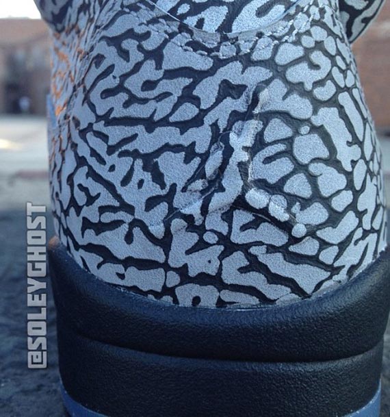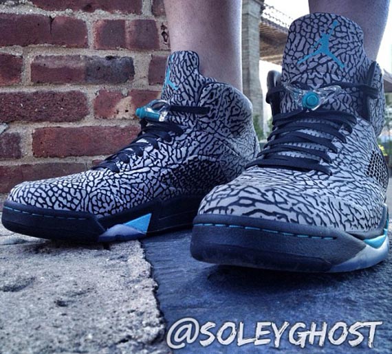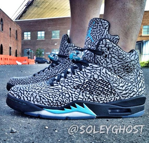 我们已经多次曝光了这款全爆裂版本的 Air Jordan 5 谍照了,此次为大家带来的是国外网友的全新上脚照片。从图片中我们可以看出,这款 Air Jordan 5 有着极为夸张的全爆裂纹鞋身,后跟的 Jumpman 标志隐藏在爆裂纹之中,没有用其它颜色区分。而鞋舌上的标志则以蓝色制成,极为显眼。据悉这款疯狂的 Air Jordan 5 将在今年下半年发售。