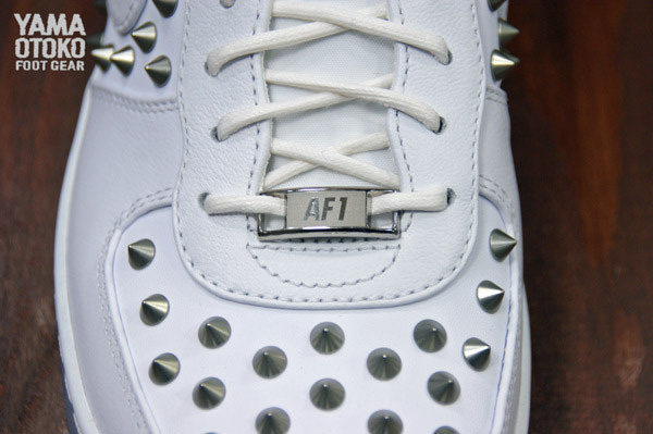 铆钉设计并不是 Christian Louboutin 的专利,此次 Nike Sportswear 也为我们带来了一款带有铆钉设计的 Air Force 1 Downtown。鞋款以白色鞋身呈现,分别在鞋头、后跟以及鞋身两侧加载上了数量不等的银色铆钉装饰,并配以白色的半透明水晶大底,尽显浮夸。据悉这款 Air Force 1 Downtown Spike 将在近期发售,有兴趣的朋友可以密切留意一下身边的 NSW 专柜。