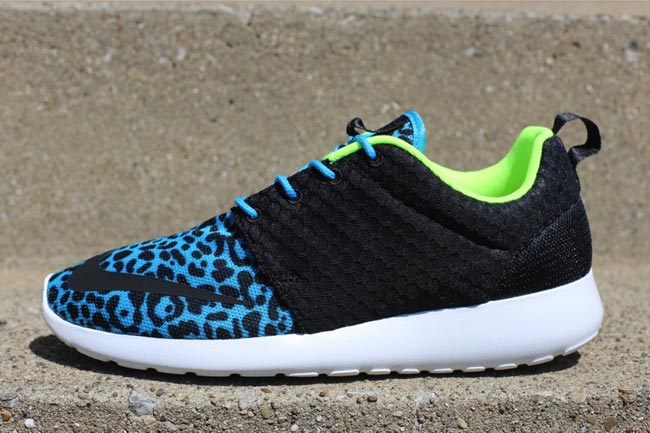 继续为大家带来大热的 Nike Roshe Run 最新消息。此次 Roshe Run FB 以野性的豹纹设计登场,除了豹纹图案的鞋头之外,鞋款还采用了荧光绿色的瞩目配色,再配以黑色的鞋身网面以及白色的 Phylon 大底,各位喜欢的话不妨关注一下,这两款配色都将在不就在各大 NSW 专柜上架。