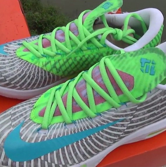 距离官方发布 Nike KD6 的日期越来越近,下月初,早些时候曝光的一款黄绿色 KD6 也将率先登陆各大专卖店。而此次,又有两款全新配色曝光于网络,除了一款绿灰配色之外,另外一款鞋面带有旋涡状纹理图案的配色更为引人注意,目前还没有这两款配色的详细信息,目前的这三大配色,各位最钟爱哪款?