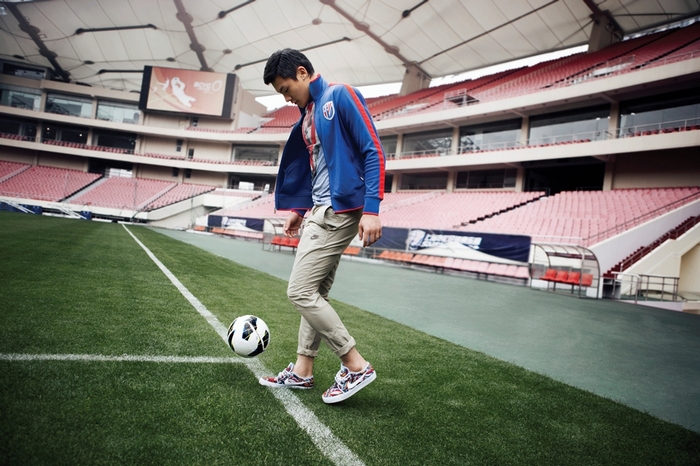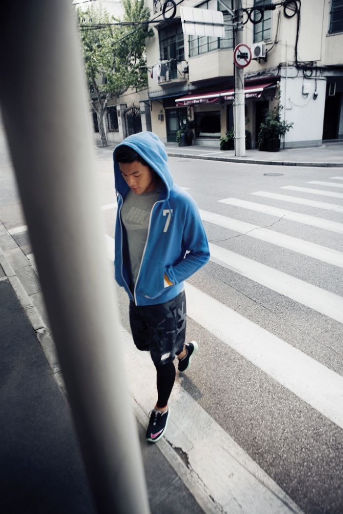 王大雷:基本上是我自己,因为我觉得这件事很简单。我平时比较喜欢穿帽衫搭配运动裤这样简单的装扮,对于鞋子我比较讲究,因为我非常爱鞋,所以在鞋的选择上会考虑多一些。我选择的服装款式基本上是为了搭配球鞋,哈哈!