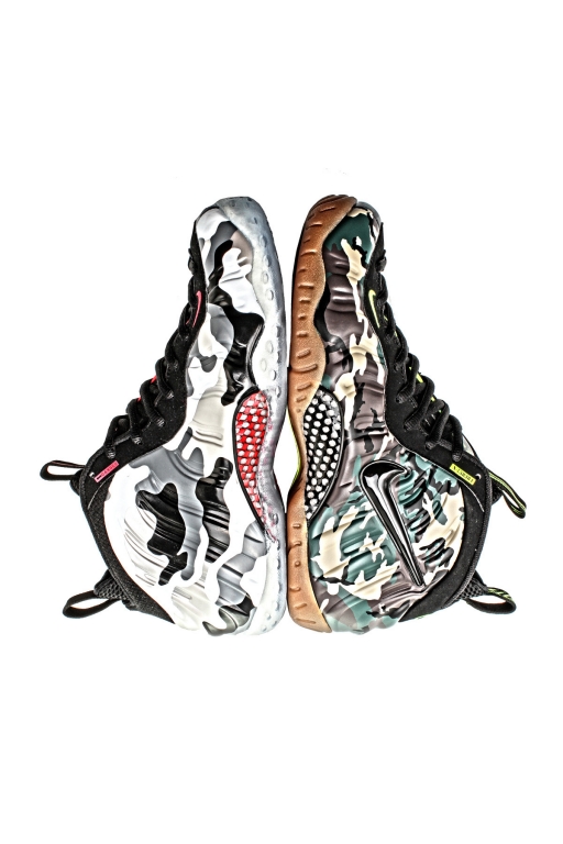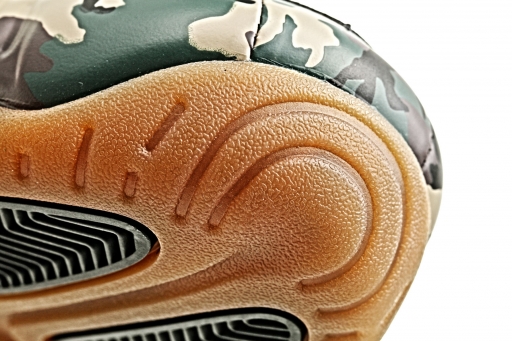 这双nike Air Foamposite Pro "Army Camo"的外底设计应该算是鞋子的整体设计之中,最容易令人产生亲切感的部分。那类似我们童稚记忆里无法忘却的军品橡胶鞋的颜色,定会让很多朋友突然回想起儿时充盈于心中,那份立志成为一名光荣的军人保家卫国的赤诚情感。