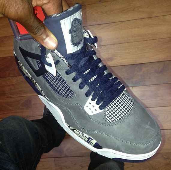 之前一款以北卡罗来纳大学篮球队为理念打造的 Air Jordan 4 PE ,非常惊艳。此番,克里斯 保罗又在个人 Instagram 上曝光了一款以篮球名校乔治城大学队为灵感设计的 Air Jordan 4 PE 。鞋款采用了乔治城大学标志性的灰蓝色,中底以及内衬则加载了涂鸦设计,而乔治城大学标志性的斗牛犬 Logo 则显眼的添加在了鞋舌之上。如果这款鞋能够发售的话,各位会入手么?