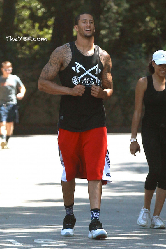 近日49人队的四分卫 Colin Kaepernick 在外出时上脚了近期大热的 Air Jordan 11 Low 黑白配色,身材健硕的他还配以一件超酷的黑白背心以及一条红色的球裤,配色与球鞋的配色也相当呼应,而个性的袜子也成为了整身搭配的点睛之笔。
