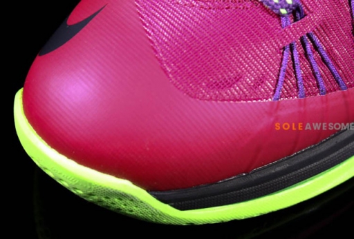 这双球鞋的设计灵感及配色来源于Nike Kobe 8 “Mambacurial”。带有强烈对撞感的静电绿色和亮栗子色给球鞋带来了出众的未来感。而球鞋的内衬及Flywire部分则采用层次感十足的紫色进行勾勒。作为一双拥有出众配色的球鞋,鞋子底部的绿色让球鞋整体焕发出十足的跳跃感,喜欢的朋友不要错过。