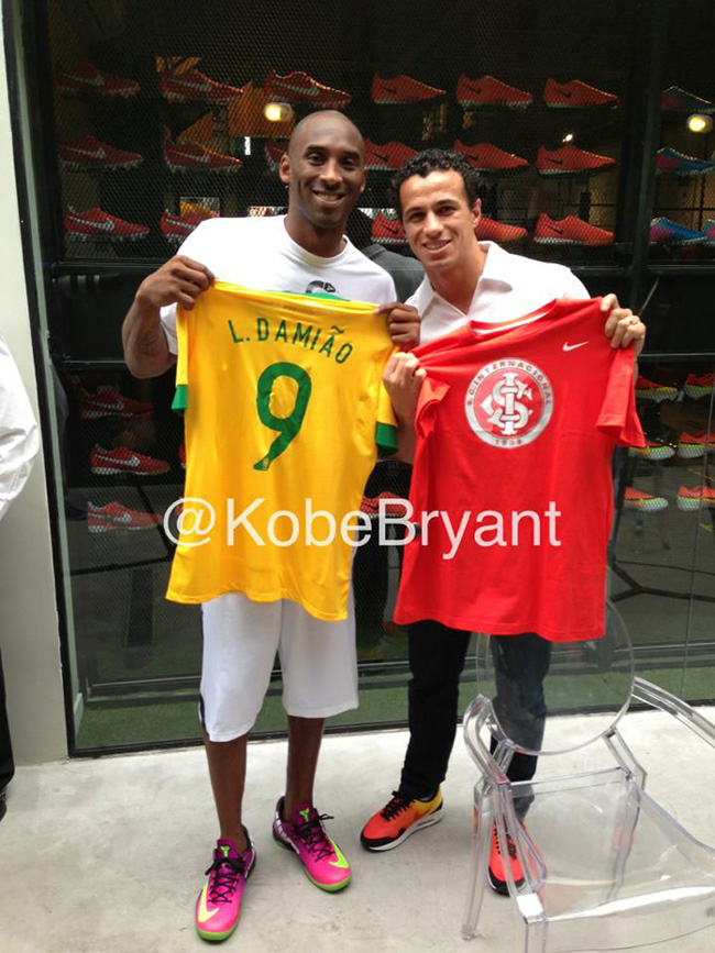 近日,酷爱足球的科比 布莱恩特现身巴西,观看在巴西举行的联合会杯足球赛。而配合足球赛主题,科比也很有心机的上脚了一款以足球鞋配色为灵感打造的 Nike Kobe 8 System "Mambacurial" 。
