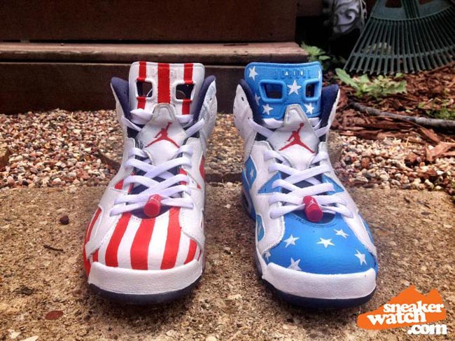 Air Jordan 6 "Olympic" 版本诞生于 2000 年,在广大粉丝心中有着很高的人气。而近日球鞋定制爱好者又以星条旗理念为灵感,重新打造了一双 Air Jordan 6 "Olympic Flag" 个人定制版。鞋款以鸳鸯形式呈现,分别以白蓝的星星以及白红的条纹覆盖,这样的鸳鸯鞋上脚应该非常帅气吧?