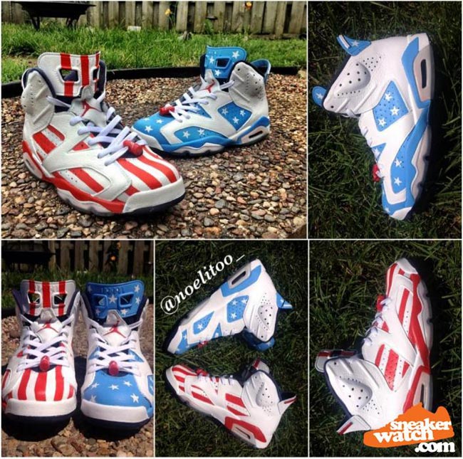 Air Jordan 6 "Olympic" 版本诞生于 2000 年,在广大粉丝心中有着很高的人气。而近日球鞋定制爱好者又以星条旗理念为灵感,重新打造了一双 Air Jordan 6 "Olympic Flag" 个人定制版。鞋款以鸳鸯形式呈现,分别以白蓝的星星以及白红的条纹覆盖,这样的鸳鸯鞋上脚应该非常帅气吧?