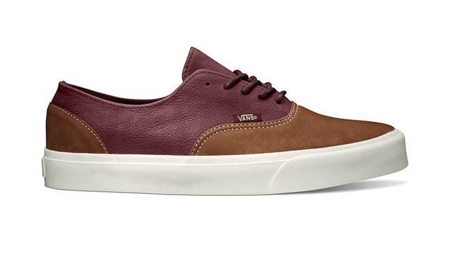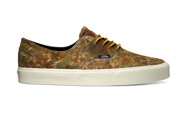 2013 年秋季,“迷彩”以及“撞色”这两大热门元素将齐齐出现在 Vans California Era Decon 新品的身上。其中最为引人注意的迷彩版本采用了手工水彩的技艺在麂皮材质上注入户外感十足的迷彩图案;另外两双 Two-Tone 设计的鞋款则采用了颗粒纹理的材质配以皮革组合而成。该系列鞋款均配以硫化华夫大底,售价为75美元。