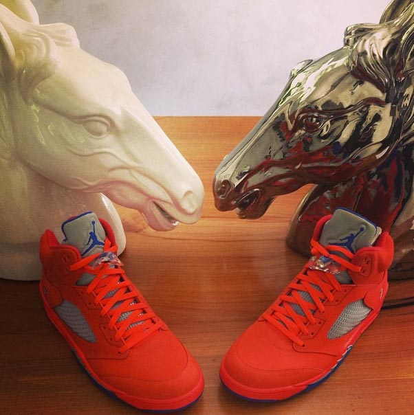在经过了多次曝光之后,大家对于这款即将在今年下半年发售的 Air Jordan 5 Carmelo Anthony PE 格外期待。而昨天,这款鞋的主人纽约尼克斯队的卡梅隆 安东尼亲自在个人 Instagram 上晒出了这双 Air Jordan 5 PE ,看来他本人也很是喜欢这款鞋。相信在他亲自的晒鞋之后,这款鞋的热度一定会更加升温。