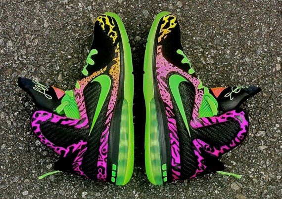 近日球鞋定制团队 District Customs 释出了一款名为 “Leopracheebra” 的 Nike LeBron 9 个人定制版本,何为 “Leopracheebra” ,就是将 leopard(金钱豹)、cheetah(美洲豹)以及 zebra(斑马)三个英文相结合,因此在鞋款设计上,也将这三种动物纹元素相结合,打造出了这款极具梦幻效果又不失野性的定制作品!