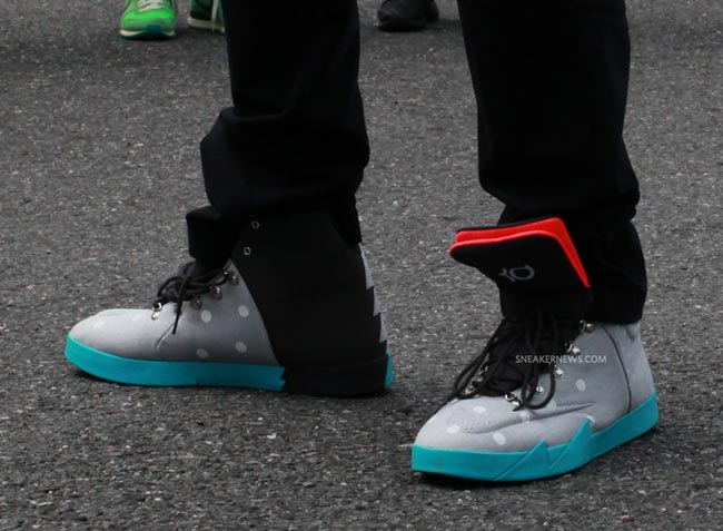 今天,Nike Basketball 官方发布了凯文 杜兰特第六代战靴 Nike KD6 ,在发布会上,杜兰特本人亲自到场,而在之后的户外活动中,杜兰特亲自上脚了一款全新的 Nike KD 6 NSW Lifestyle。这款鞋有着极为夸张的大鞋舌,鞋头以及大底则明显带有 KD6 的设计风格,而鞋带则加载了户外鞋款常见的金属鞋带扣设计。目前还没有这款 Nike KD 6 NSW Lifestyle 的更多信息。