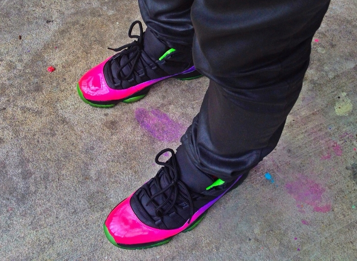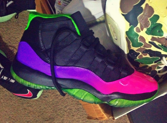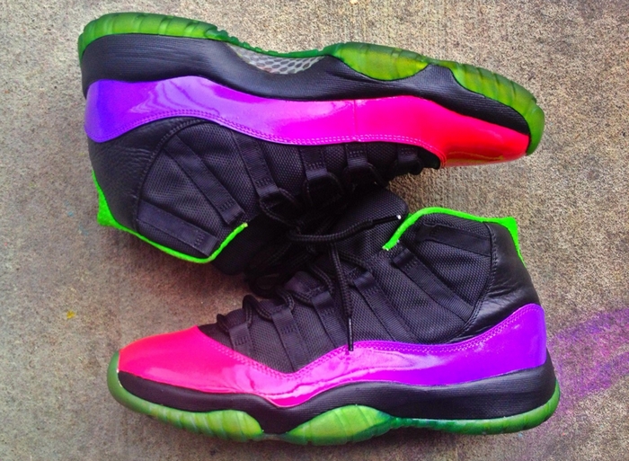 近日网络上曝光了这款全新定制版本的Air Jordan 11“Ultraviolet”出自Noldo的定制新品,在配色设计上,运用由紫色到粉红色的渐变效果装扮整个漆皮材质,使用绿色内衬,绿色透明水晶外底,在黑色鞋面的衬托下犹如“致命紫罗兰”的盛开。目前这款定制版本Air Jordan 11“Ultraviolet”出现在了eBay之上喜欢的朋友可以前去了解。