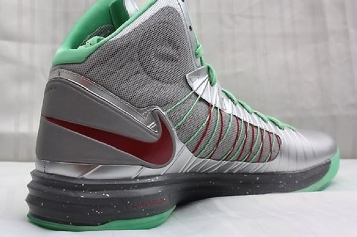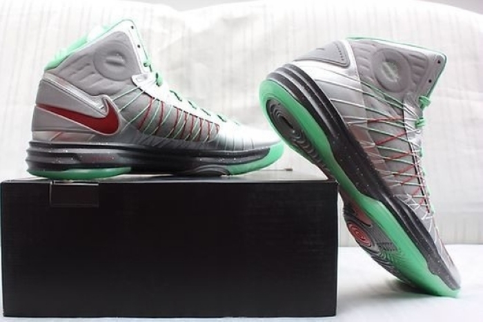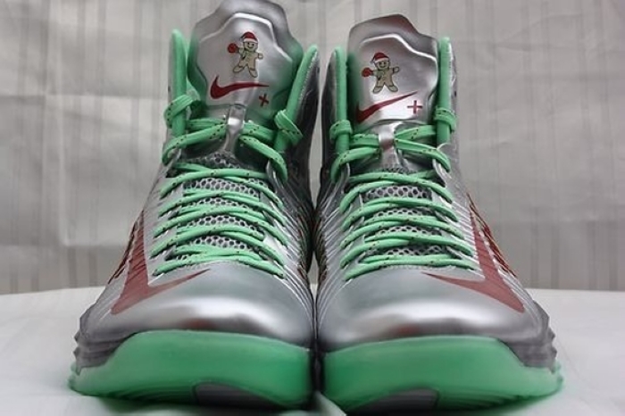 鞋舌处诱人的“Gingerbread Man”Logo十分诱人,圣诞元素得到了十足的展示,近日这双Nike Hyperdunk 2012“Gingerbread Man”PE在网络上曝光了一组实物图片,金属气质浓郁的鞋身搭配绿色与红色的细节装饰,鞋舌处的“Gingerbread Man”Logo十分别致,目前它出现在eBay之上。