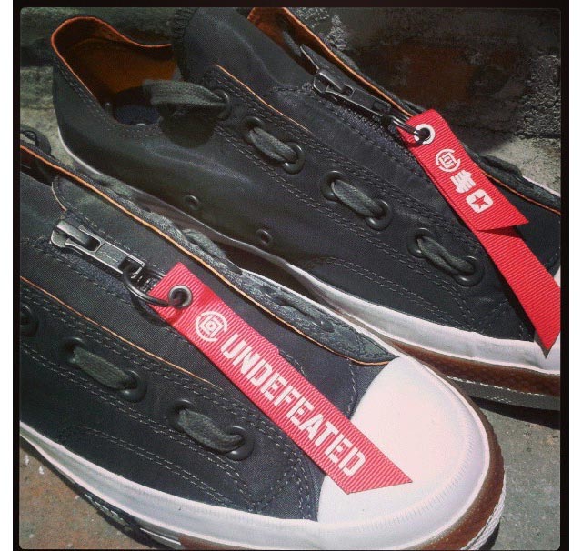 近日,一位名为 Sneakergaga 的鞋迷朋友在个人 Instagram 上为我们曝光了一款瞩目鞋履,从谍照中我们可以清晰的看出,这款鞋出自陈冠希主理的潮流品牌 Clot 、美国潮流巨头 Undefeated 以及知名运动品牌 CONVERSE 的三方联手。Clot 今年与 Undefeated 的关系极为紧密,在先前 Juice 台北店重新开幕的时候,Juice 便为我们带来了一系列 Undefeated 的限定单品。此番的联姻可谓是将两大品牌的关系更近一步。目前还没有这款鞋的详细信息,各位潮流人士感兴趣的话可以密切关注一下。