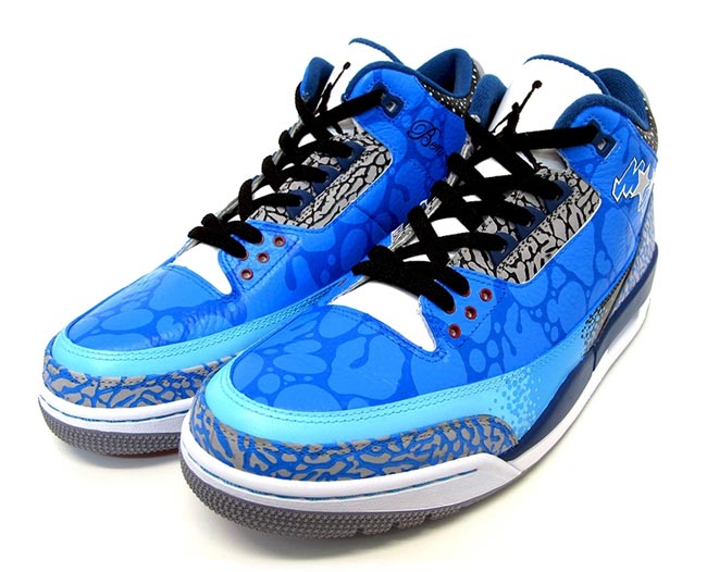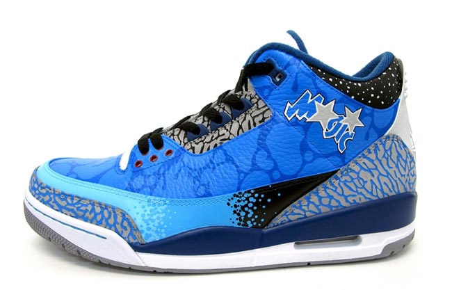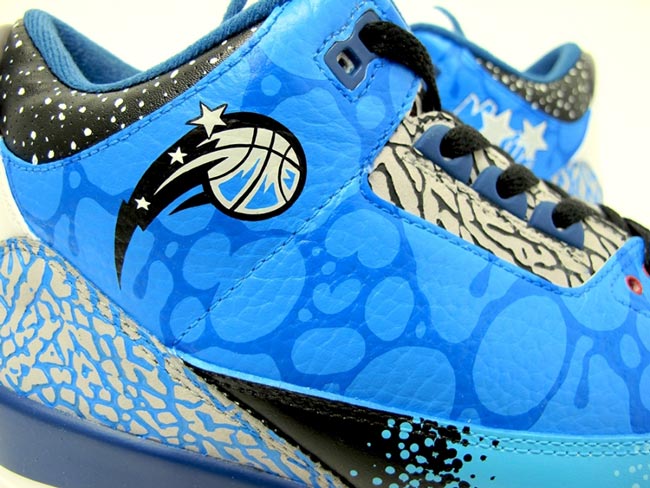 近日来自澳大利亚的球鞋定制爱好者 Sekure D 以 Air Jordan 3 为设计蓝本,采用奥兰多魔术队为灵感,打造出了一款 Air Jordan 3 “奥兰多魔术” 个人定制鞋履。鞋款以极具代表性的魔术蓝色覆盖,配以鞋面的渐变设计以及 Air Jordan 3 标志性的爆裂纹装饰,而鞋帮处还加载了一个魔术队队标。