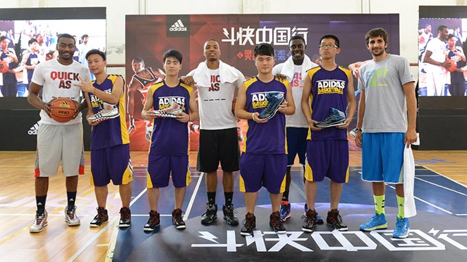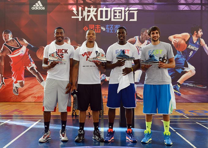 2013年7月2日下午(北京时间),阿迪达斯“唯快不破”斗快中国行——斗快上海滩强劲入沪,阿迪达斯旗下四位NBA球星约翰•沃尔、达米安•利拉德、里基•卢比奥以及朱•霍乐迪在上海卢湾中学篮球馆与热情的上海篮球迷们见面。活动在四名NBA球员与来自“阿迪达斯篮球擂斗场”的上海本土篮球高手的对决中达到气氛最高潮。