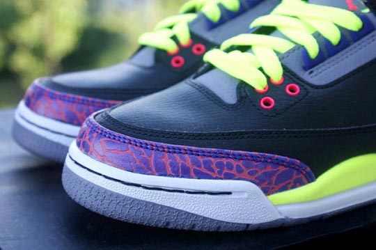 上个月,一款全新配色的 Air Jordan 3 GS 曝光于网络,此番,这款鞋的实物图片也终于曝光于网络。从此次的实物图中我们可以看出,这款 Air Jordan 3 GS 采用了黑色的鞋面为主体,爆裂纹图案以紫色呈现,而中底以及鞋带则注入了亮眼的荧光黄色,细节位置还添加了桃红色点缀。目前还没有这款鞋的确切发售信息,各位 MM 感觉如何呢?