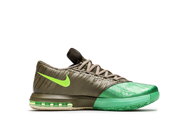 7月13日,随着杜兰特2013篮球之旅的开始,耐克也推出了他的第六代签名鞋款的特别版—— KD VI Bamboo 。秉承原版中针对杜兰特精准步伐的特殊设计及性能创新,Bamboo 特别版还融入了中华传统哲学思想中对竹之品质的诠释,竹子的坚韧、平衡性、全面、可塑性等特色无不体现其中。