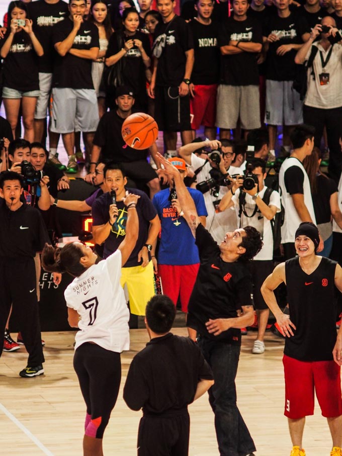 网球运动员李娜和NBA巨星杜兰特在上海与现场两千多名的青年朋友们共同宣誓,将城市的每个角落都变成挥洒汗水的运动场。与他们一起亮相的还有滑板明星奥马尔,来自各界的“运动员” (耐克一直秉承的宗旨:只要你有身体,你就是运动员)一起参与了包括篮球、足球、滑板、网球、接力赛跑、NTC、躲避球等各项运动,将晚上8点到10点的黄金时间转变为运动时间。