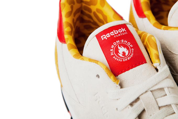 该鞋联名版本的 Classic Leather 在配色上旨在向 Hanon Shop 的故乡 Aberdeen 致敬,采用了黄色以及米色拼接打造鞋身主体,鞋舌以及后跟处则添加了一抹红色点缀。而 Hanon 标志性的火焰 Logo 则加载在了后跟以及鞋舌之上,内衬还注入了类似迷彩的设计。据悉这双 Hanon x Reebok Classic Leather 30 周年联名鞋款将于近期正式登陆 Hanon Shop 以及其它 Reebok Certified Network 店铺。