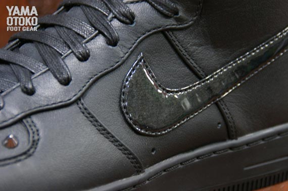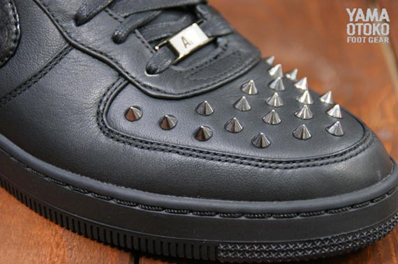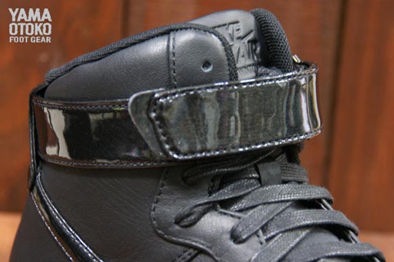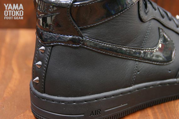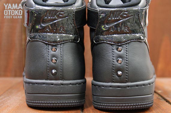 在早些时候的低帮版本之后,此次 Nike Sportswear 又发布了一款高帮版本的 Nike Air Force 1 Downtown 铆钉版本。鞋款采用了黑魂理念打造,以高质感的黑色皮革材质组成鞋身主体,脚踝处的魔术贴以及 Swoosh 则为漆皮材质,鞋头以及后跟位置数量不等的铆钉装饰则为这款鞋增添了一丝摇滚叛逆的感觉。