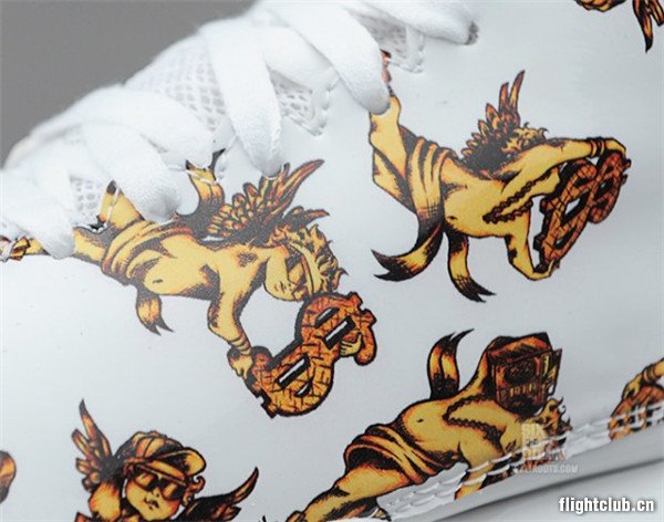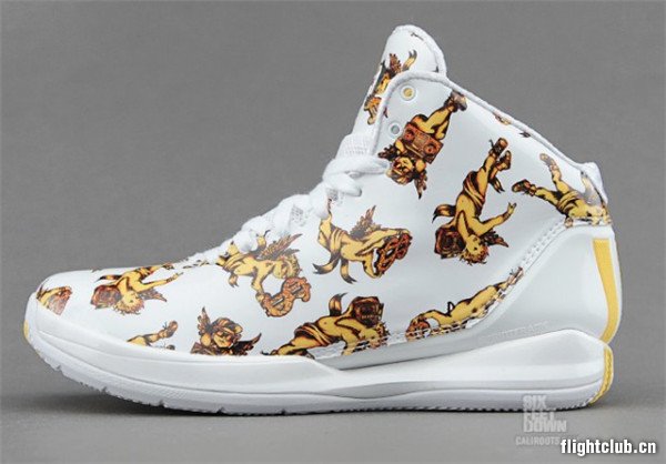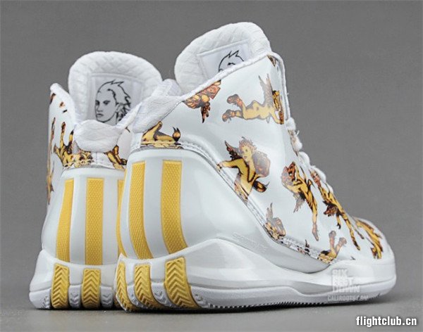 时尚达人Jeremy Scott 与 adidas 篮球合作推出Jeremy Scott X adidas D Rose 3.5 ,纯白为基础色,鞋身上是各个形态手持美金标志和录音机的天使,鞋舌上有黑色的刺绣玫瑰标志,后跟和大底为金色三道杠的装饰。这次的图片主要是要是从多角度展示了一些该鞋的细节。