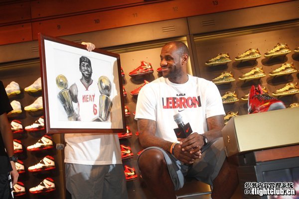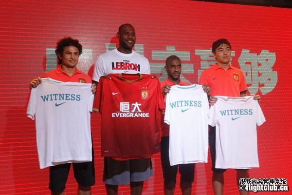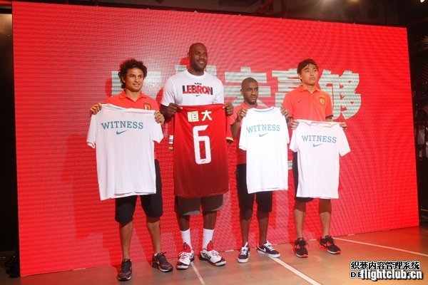 詹姆斯的夏季访华行程惊喜不断,继昨日神秘现身广州篮球场后,今日,詹姆斯和广州恒大队的球员埃尔克森、穆里奇和冯潇霆一同莅临耐克广州品牌体验店,与球迷及体育爱好者们亲切互动。由于詹姆斯所在的迈阿密热火与广州恒大都刚刚在各自的联赛中获得第二个冠军称号,这场跨界的交流也因此充满了精彩的火花。值得一提的是,作为东道主的恒大队员们向詹姆斯赠送了广州恒大队的签名球衣,而詹姆斯也亲自将夺冠纪念版的T恤回赠与恒大诸将。恒大球员和詹姆斯都祝愿对方在新赛季能够继续冲击第三个联赛冠军,并期待看到对方今后的上佳表现。