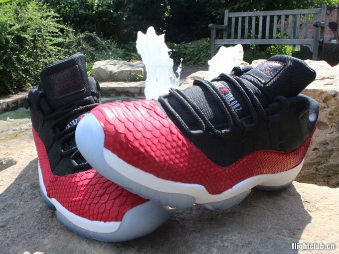 球鞋定制团队 CMB Kicks 前不久推出了一款 Air Jordan 11 Low “黑蟒” 个人定制版,此次,CMB Kicks 再次发力,再次祭出了一双相同理念的定制版本。此次的定制目标依旧选择了大热的 Air Jordan 11 Low ,而漆皮部分此次选择了以红色仿蟒蛇纹材质替换。但是效果似乎比上次的作品差了一些,各位觉得呢?