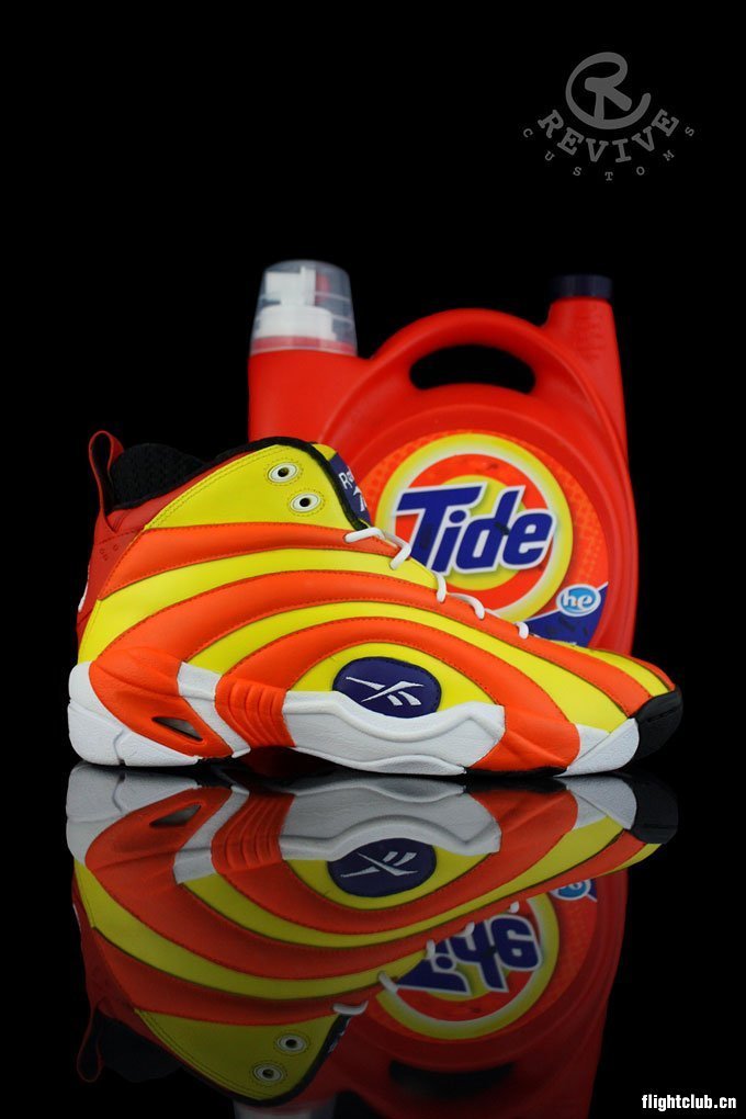 大鲨鱼奥尼尔的经典战靴 Reebok Shaqnosis 近日复刻发售,这股“年轮”带来的复古风潮得到了不少人的关注。此次,球鞋定制团队 Revive Customs 便以 Reebok Shaqnosis 为设计蓝本,定制灵感汲取于大家都很熟悉的 “汰渍”包装,鞋面以橙黄色打造,而年轮鞋身上的线条也与“汰渍”的圆形标志不谋而合。如此特别的创意也令人感到十分有意思。