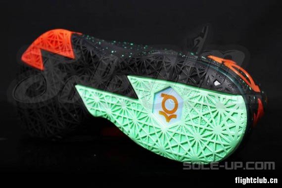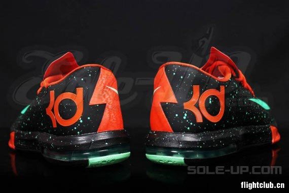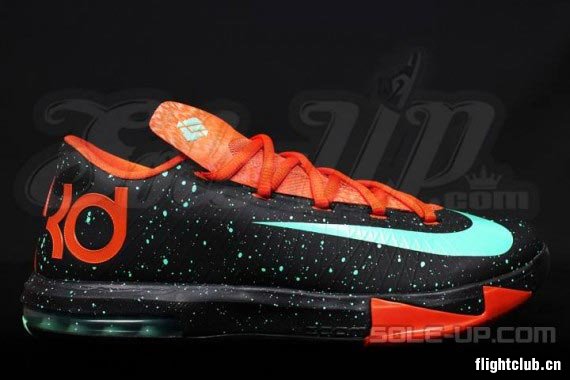 这款全新配色的 Nike KD 6 在前两天我们已经率先为大家曝光过了,此次这款 Nike KD 6 “Mint Speckle” 配色的细节图片在网络上释出。这款配色最大的亮点莫过于鞋身上的大面积泼墨设计,原本黑橙色低调的鞋身在绿色的泼墨装饰下立刻显得高调异常,目前还没有这款配色的确切发售信息,喜欢的朋友可以期待一下。