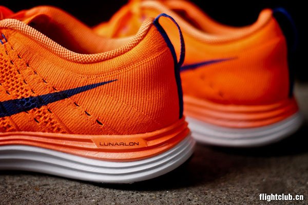 近日 Nike Running 发布了一款带有浓重纽约风格的 Nike Flyknit Lunar1 ,鞋款以醒目的橙色打造鞋身主体,Swoosh 、后跟以及细节则以蓝色点缀,白色的 Lunarlon 大底配以卓越的 Flyknit 鞋身也为这款鞋提供了极为舒适的脚感。据悉,这款鞋已在诸如 KithNYC 等店铺上架,喜欢的朋友可以关注一下。