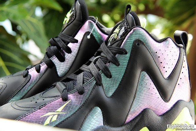 早在四月份网路上就曝光过蛇年配色的Reebok Kamikaze II的谍照,而近日网路上曝光了这款版本详细图片,蛇年版本鞋面采用大面积渐变蛇纹材质和黑色革面相间的搭配,荧光绿作为点缀色出现在鞋舌、鞋头Reebok Logo和外底后跟处,据悉这款配色不久之后将于大家见面,更多信息会陆续带来。
