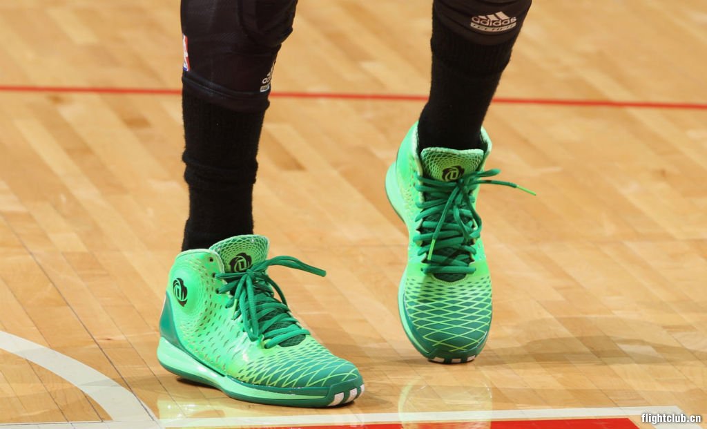 或许是想沾一沾爱尔兰人的运气能让自己从前交叉韧带手术的治疗中更快恢复,芝加哥公牛队得分后卫Derrick Rose在周日球队的投篮训练中脚着圣帕特里克节配色的adidas Rose 3.5亮相。 这款圣帕特里克节配色的adidas Rose 3.5以多种绿色组合打造,鞋舌以及脚踝处的黑色D1 logo极其显眼。