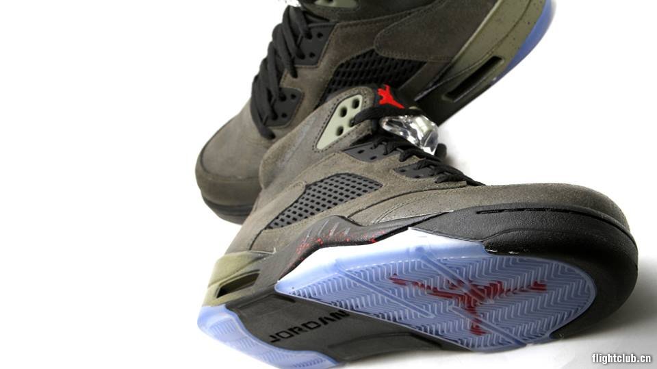 AJ4 "OREO" 的发售日已经临近,“Fear Pack” 中的另外一双鞋 AIR JORDAN 5 "Fear" 曝光了更多的细节图片。 此鞋款鞋面采用深色的橄榄绿,中底外侧是有一个从绿色到黑色的渐变,大底采用浅蓝色的水晶底,鞋舌上有红色的飞人标志。 我们将持续关注 AIR JORDAN 5 和此鞋款的具体发售信息。