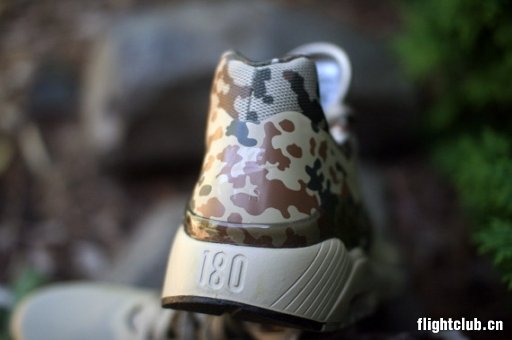 Nike的CAMO系列企划让更多的人开始关注足下的迷彩鞋款。而在其中,当然受不了德国制式迷彩的身影,这种迷彩技术被称为“flecktarnmuster”,并于二战早期投入到德国部队之中。在Nike的迷彩系列中,也有一款运用这种迷彩技术的鞋款——Nike Air 180。鞋子的周身由暗竹子色和黄褐色迷彩组成,在低调中也透露出一种潮范儿。喜欢的朋友不要错过。