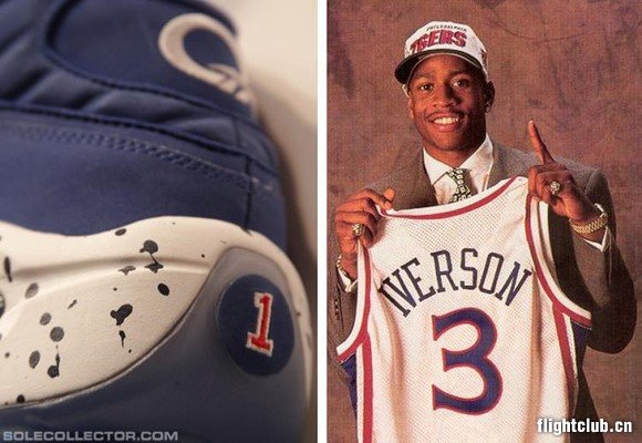中底还是经典的蜂窝科技,采用白色泼墨点缀。后跟的数字 3 换成了数字 1,代表了当年艾佛森的状元秀。