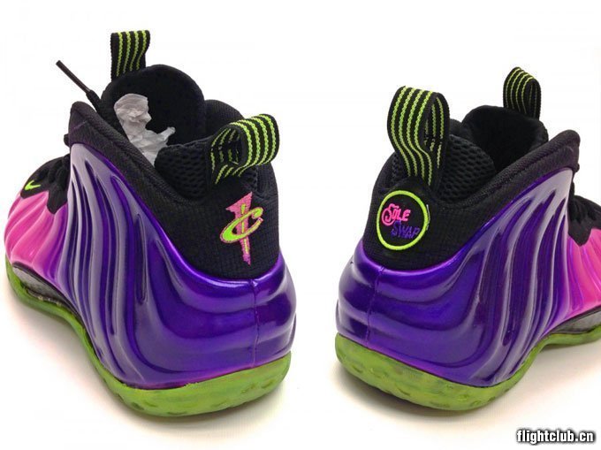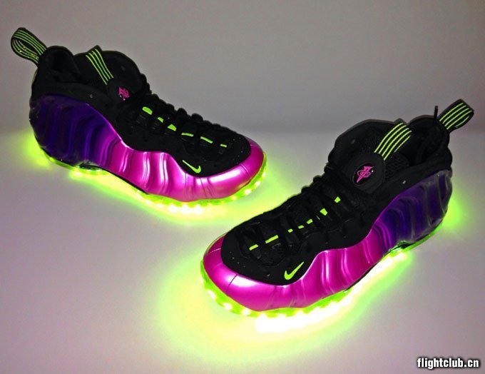 定制大牌 Sole Swap 又为我们带来全新力作,此次 Sole Swap 以 Nike Kobe 8 “Mambacurial” 为设计灵感,将这一配色运用到了 Nike Air Foamposite One 之上,并加以升级,打造出了这双惊世骇俗的定制作品。我们可以从图片出看出, Sole Swap 以粉喷为蓝本,将鞋身后半段改成了紫色,并将大底等细节部位改造成了荧光绿色,此外, Sole Swap 还在大底一周加载了 LED 灯泡,开启后的效果极为震撼。