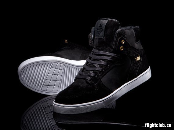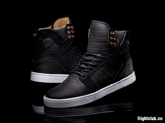 美国新兴滑板品牌 Supra 经过这几年的迅速发展,已经成为了一个风格游走于街头与高端时尚之间的品牌。此番,Supra 就为我们带来了一款时尚气质尽显的 Supra Prestige Pack ,该系列包含了 Skytop、Vaider 以及 Falcon 三大鞋型,每款鞋均以纯黑色的麂皮、皮革以及动物纹理材质组合打造,层次分明,细节部分配以金色点缀,据悉该系列将在近期发售。