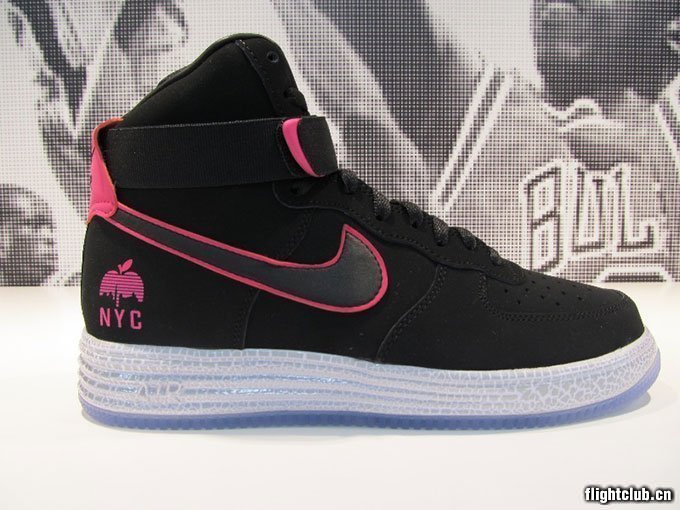 自从去年年末 Nike 推出划时代作品 Nike Lunar Force 1,从此掀开了 Air Force 1 历史的崭新篇章,之后 Nike 也一直在不遗余力地力推这款作品。此番,Nike 又为我们带来了一款 Nike Lunar Force 1 High 纽约别注,与以往的蓝橙主题不同,此次的这款纽约别注采用了黑色牛巴革作为主体,再以粉色勾勒细节,后跟上还加载了一个粉色的大苹果城 Logo,中底还注入了爆裂纹图案。目前还没有这款 Nike Lunar Force 1 High 纽约别注的市售信息。
