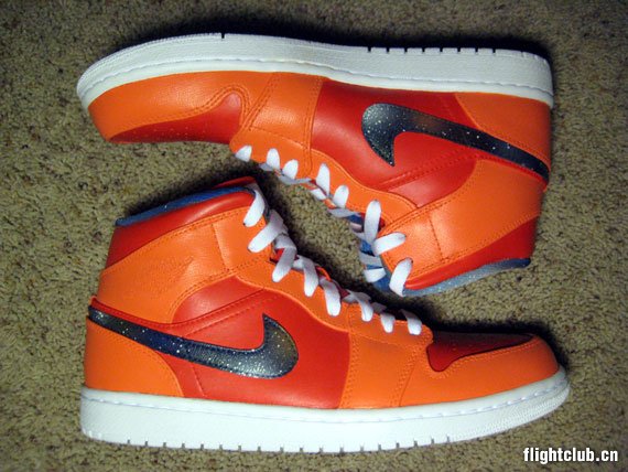今年 Jordan Brand 真的推出了不少全新配色的 Air Jordan 1 Mid,但是由于 Air Jordan 4、Air Jordan 5 等人气型号的复刻不断,Air Jordan 1 Mid 的被关注度总是不是非常之高。或许是觉得官方推出的新配色还不够有意思,近日球鞋定制方 KSM Customs 便以宇宙大爆炸为主题,打造出了这双 Air Jordan 1 Mid “Big Bang”定制作品,鞋款以橙色为主基调,设计师在 Swoosh 以及内衬上注入了银河图案,虽然实物效果不是非常出彩,但是新奇的创意还是让人感到了新鲜感。
