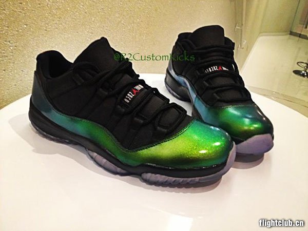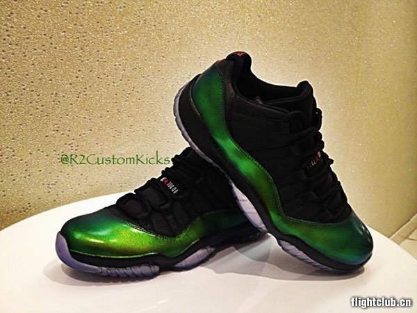 如今网络上每天都会涌现许多球鞋定制作品,近日球鞋定制团队 R2 Custom Kicks 又为我们一口气打造了两双球鞋定制作品。R2 Custom Kicks 分别以大热的 Nike Air Foamposite One 以及 Air Jordan 11 Low 为设计蓝本,在两款鞋的鞋身上均注入了一种经过特殊处理的宝石绿色,营造出了一种翡翠的特殊质感。
