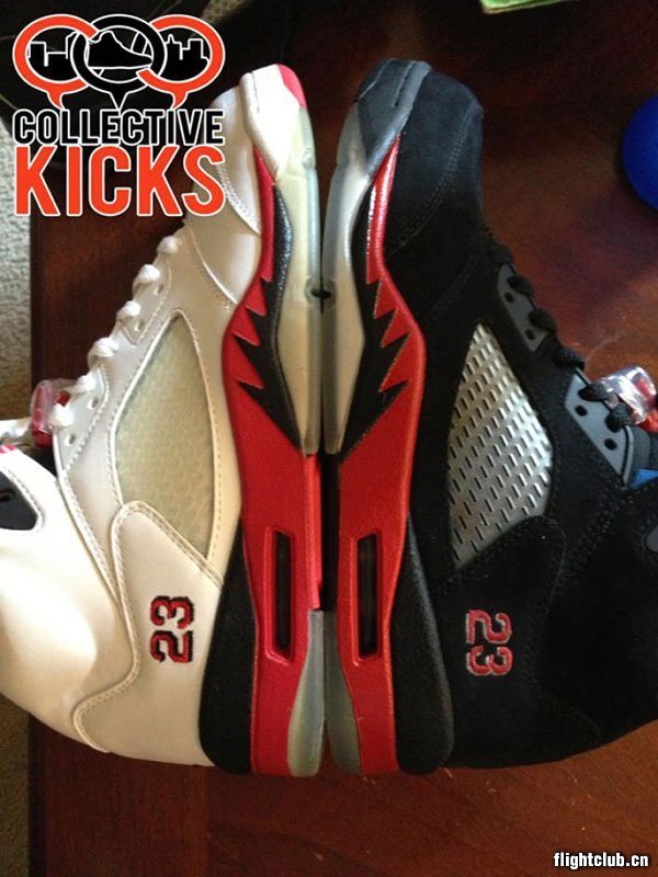 受到 Jordan Brand 前不久全新推出的“黑葡萄”配色启发,近日球鞋定制方 Collective Kicks 也打造出了一双 Air Jordan 5 “Black Fire Red”(黑火焰红)配色,Collective Kicks 将原本 Air Jordan 5 “Fire Red” 的白色鞋身替换为了黑色的翻毛皮材质,实物效果着实不错。